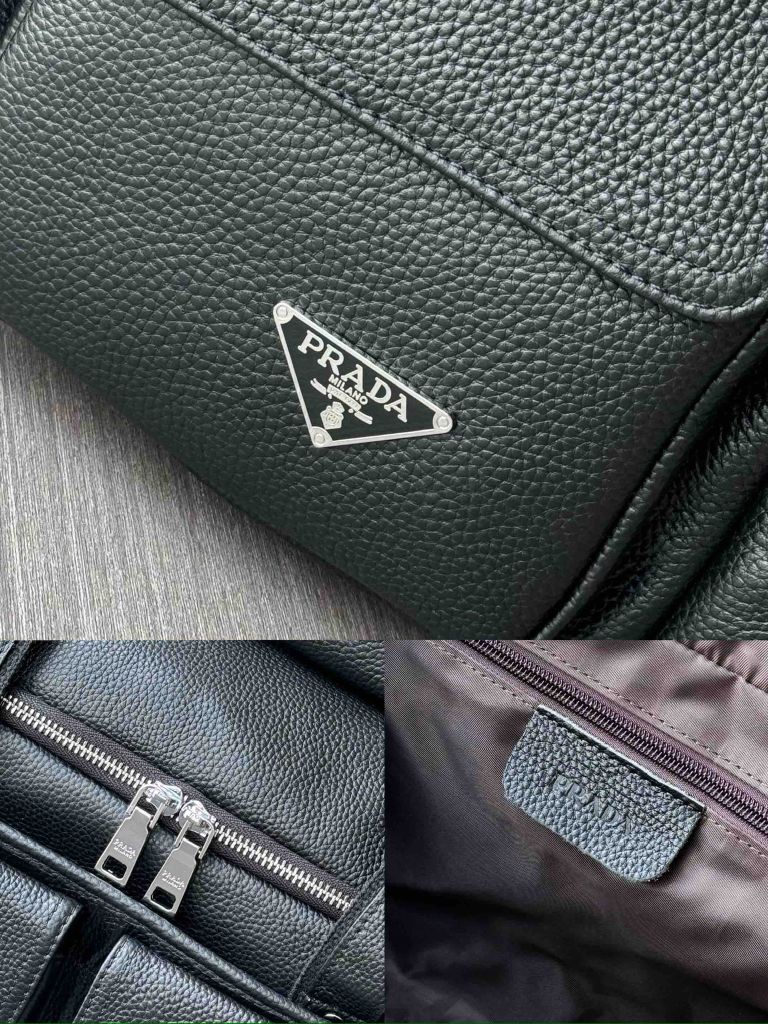 • Logo tam giác kim loại PRAD* tinh gọn ở thân túi, nhận diện thương hiệu sang mà không phô trương.