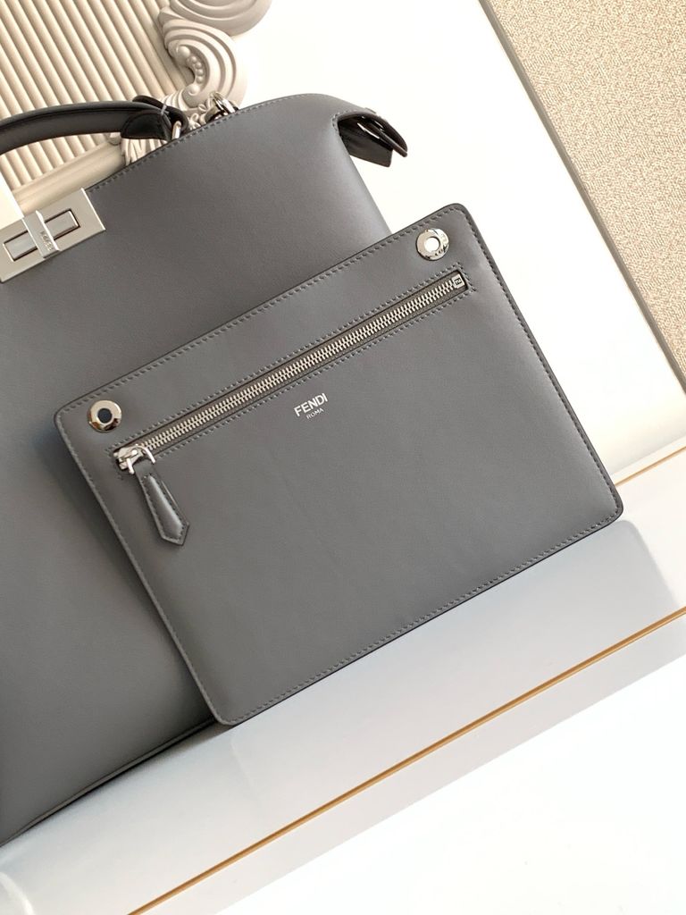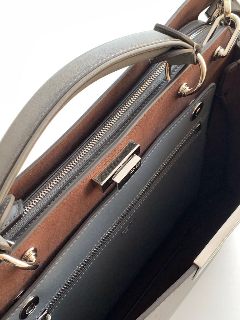 • Đường may chỉn chu, chi tiết kim loại ánh vàng nổi bật trên nền vải xám, tạo hiệu ứng thị giác cao cấp.