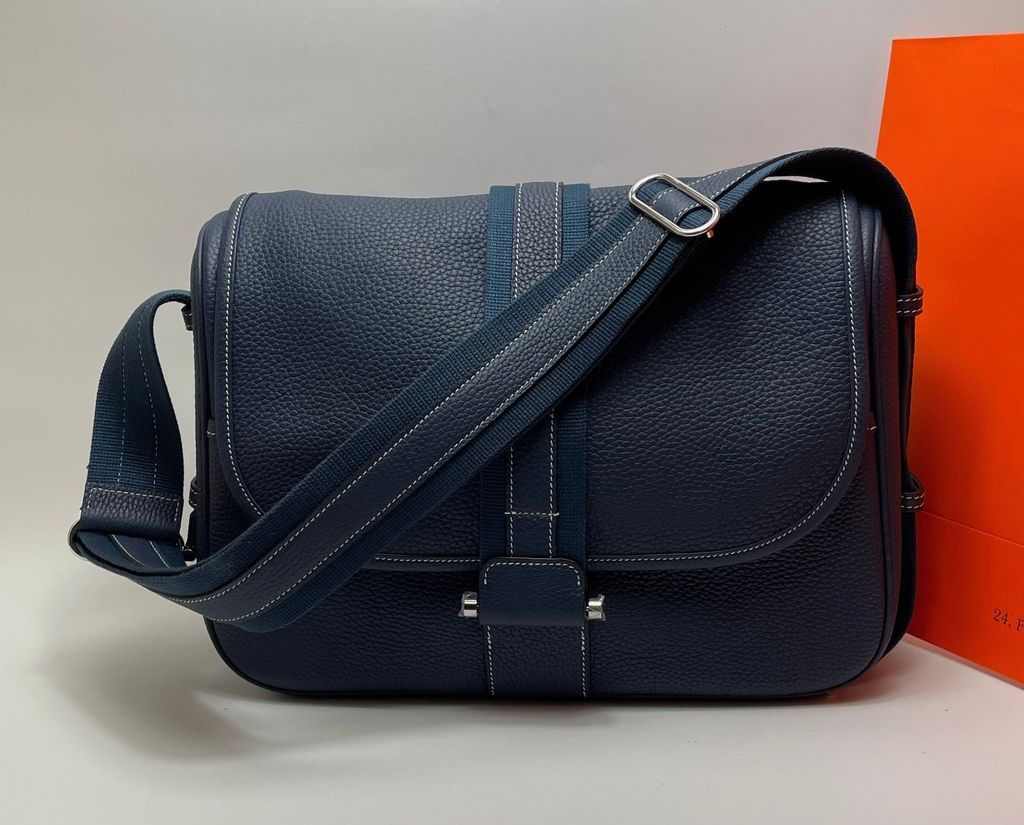 TÚI XÁCH NAM HERM* ĐEO CHÉO DA BÒ NÂU CARO SANG TRỌNG (HÀNG ORDER QUỐC TẾ)