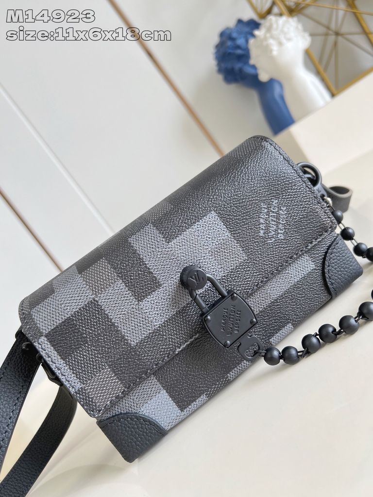 TÚI XÁCH NAM LV* STEAMER DAMOFLAGE BLACK – HỌA TIẾT PIXEL DAMIER, PHỐI XÍCH SANG TRỌNG 3100k