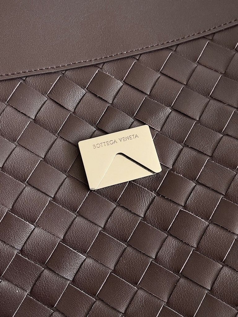 Một mẫu túi nam mang đúng tinh thần sang trọng kín đáo: phom lớn, bề mặt đan da bản to nổi khối rõ nét, lên dáng rất cuốn theo kiểu không cần phô trương vẫn tạo được đẳng cấp.
