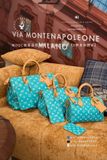 • Họa tiết Monogram phóng đại thời thượng; viền da thuộc nâu và chi tiết kim loại ánh vàng tạo tương phản xa xỉ.
