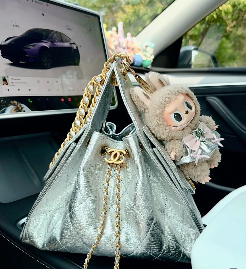 • Quai xách xích tròn nổi bật, vừa là điểm nhấn vừa như một món trang sức kim loại trên tay.