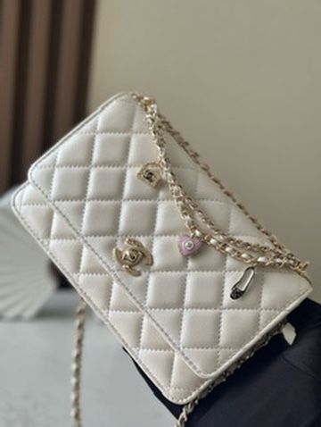 🌟 Định hình chần bông quả trám kinh điển đi kèm logo CC xoay kim loại đồng màu, khẳng định đẳng cấp “girl in pearls, bag in metals”.