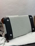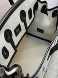 • Phối màu canvas trắng – ghi kết hợp viền và quai da đen tạo hiệu ứng tương phản “panda” hiện đại, rất dễ nhận diện.