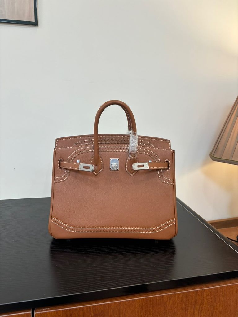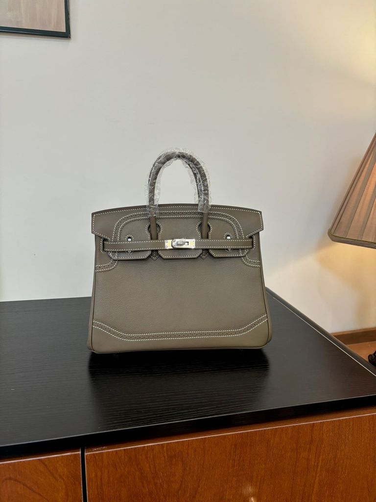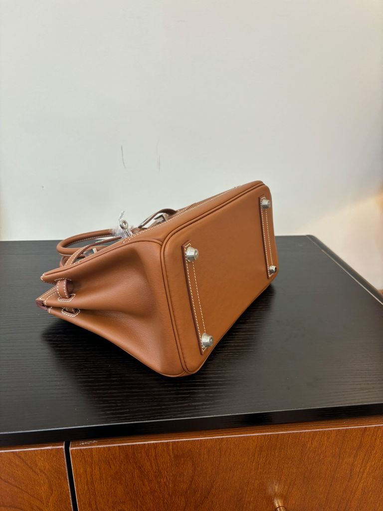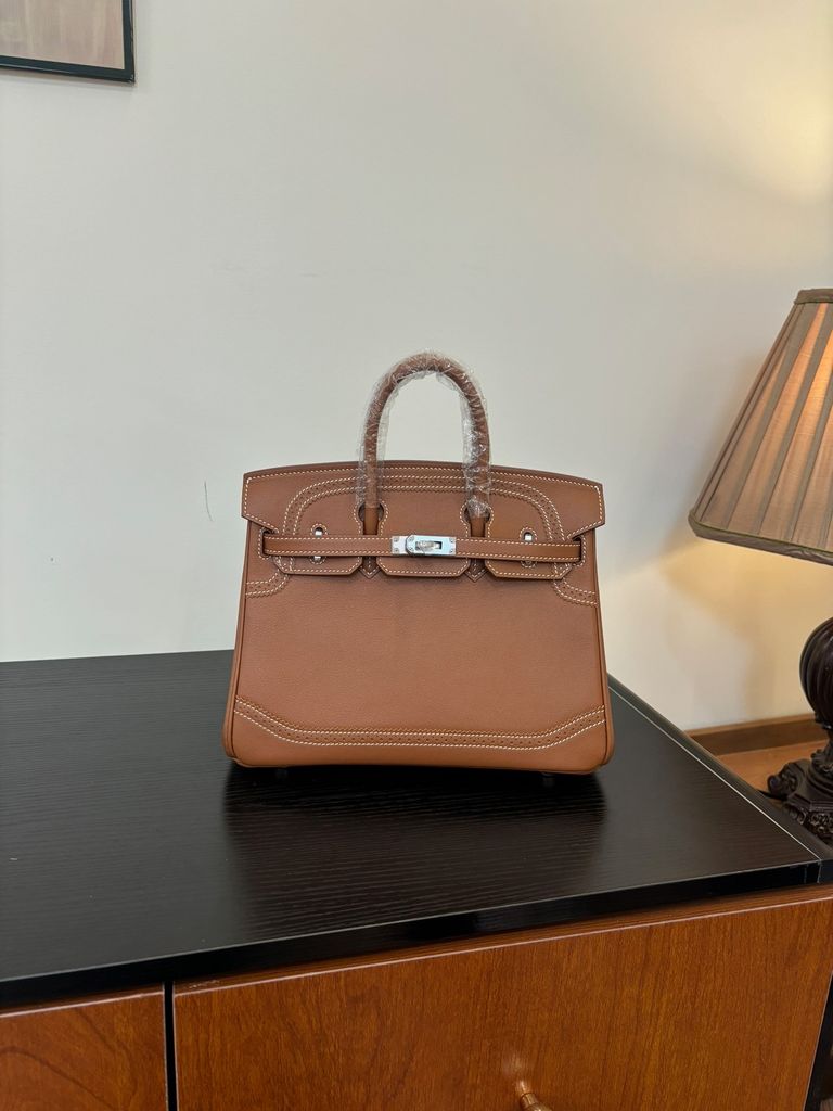 • Phom Birkin 25 cân đối, tay cầm đôi chắc tay, phom đứng gọn giữ form đẹp.