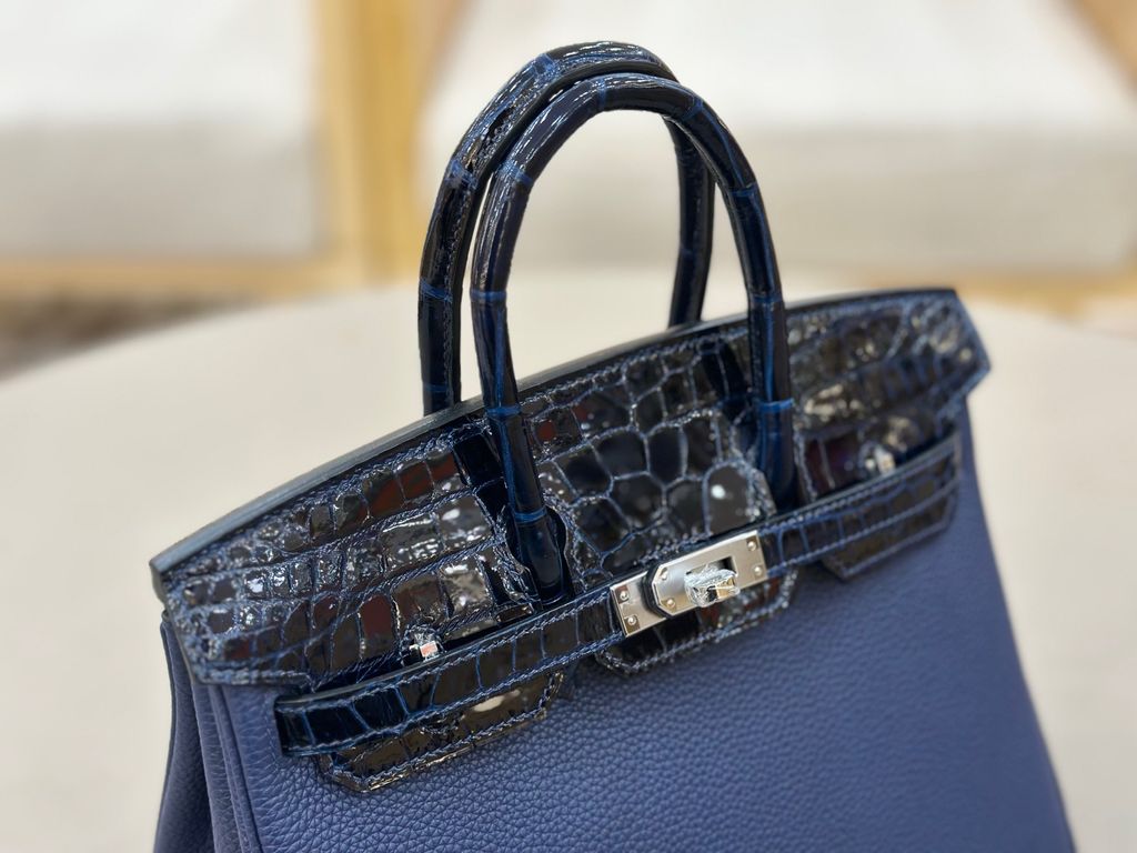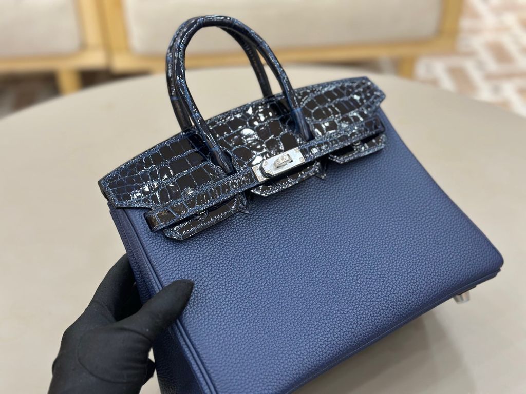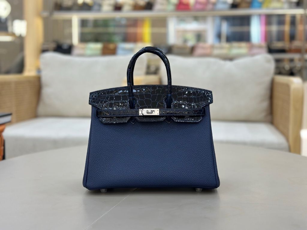 TÚI XÁCH NỮ HERM BK25 TOUCH DA TOGO PHỐI CÁ SẤU BÓNG 25CM (HÀNG ORDER QUỐC TẾ)