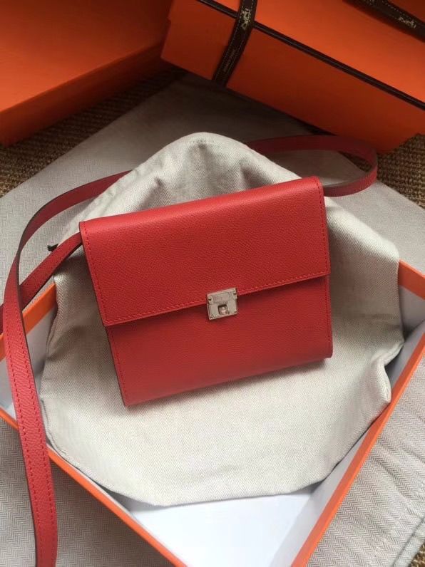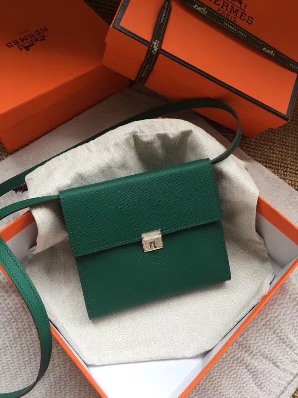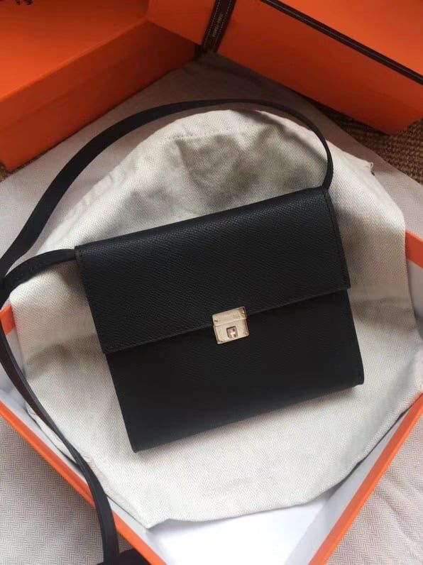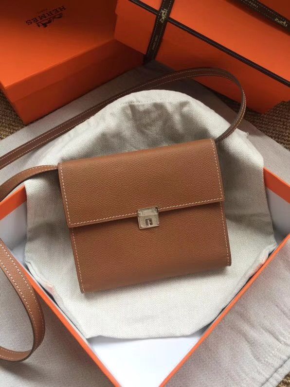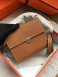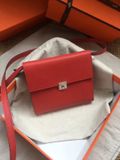 TÚI XÁCH NỮ HERM* CLIC MINI VUÔNG MÀU NÂU THANH LỊCH 2 TRONG 1 CẦM TAY & ĐEO CHÉO (HÀNG ORDER QUỐC TẾ)