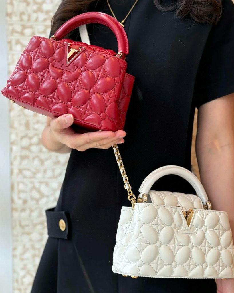 Được thiết kế lại cho mùa này theo phong cách hoạt hình đồ họa nhưng vẫn nữ tính, Capucines East-West MM được chế tác từ da cừu với hiệu ứng hoa chần bông gợi nhớ đến họa tiết hoa lồng nhau mang tính biểu tượng.