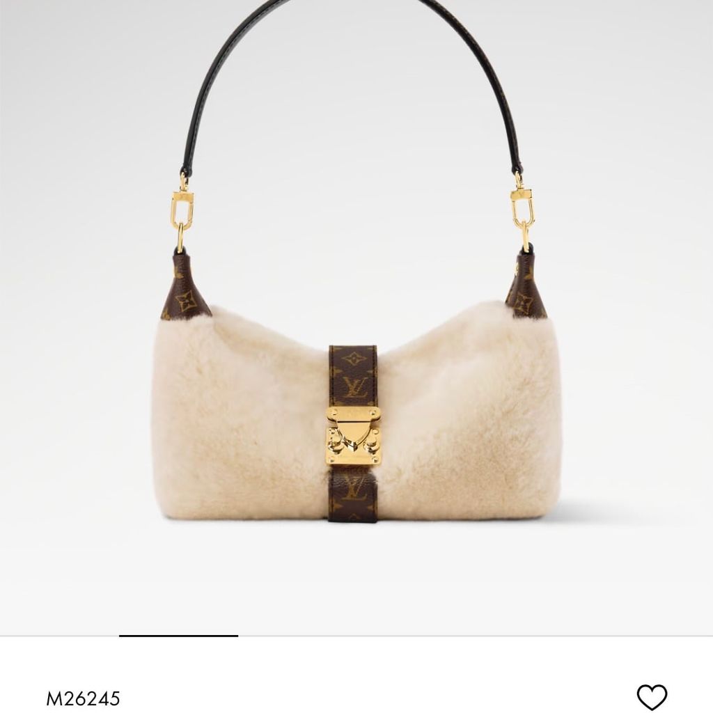 • Điểm nhấn quai giữa và đầu quai phối canvas monogram kinh điển, tạo đường viền tương phản nổi bật trên nền lông sáng màu.