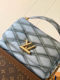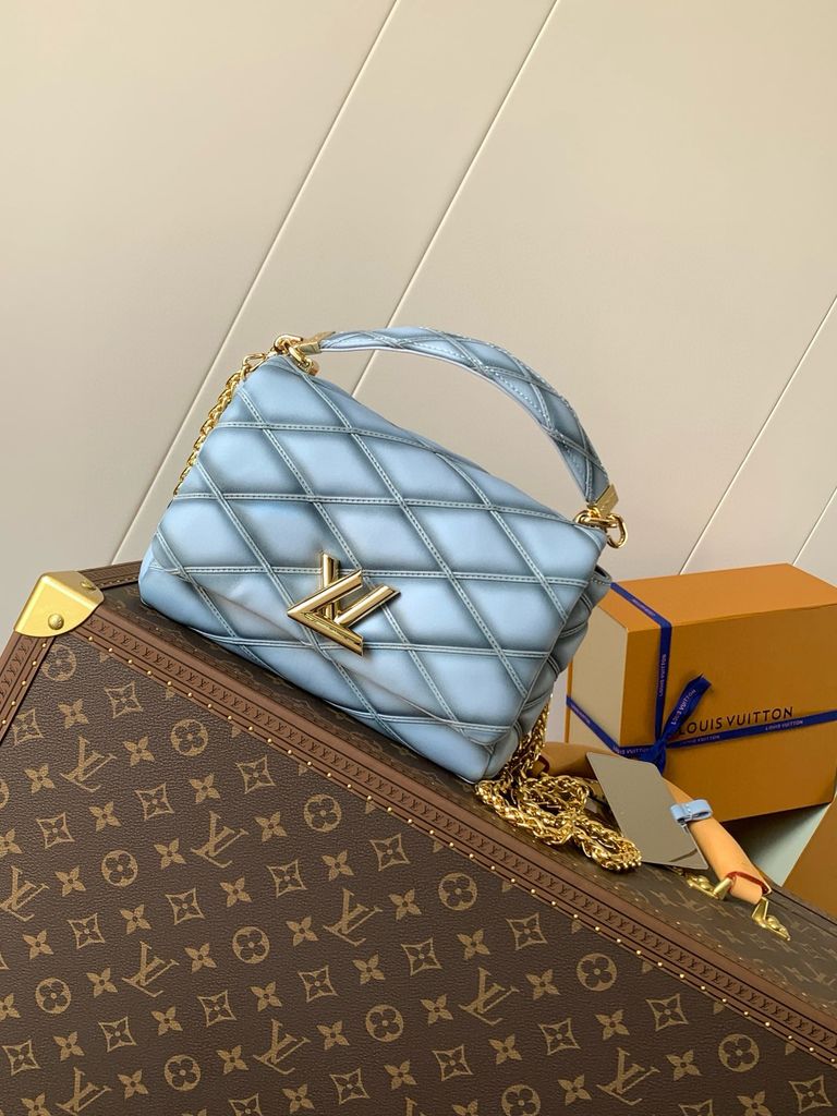 Túi xách nữ L*V VIP 1:1 các mẫu Trần Vân kim cương đẹp sang Chiếc túi xách cỡ trung GO-14 này được làm từ da cừu dày dặn, với họa tiết chần bông thể hiện sự tôn kính đối với thiết kế hành lý truyền thống của thương hiệu. Khóa xoắn Twist tăng thêm kiểu dáng bắt mắt, tay cầm phía trên có thể xách bằng tay hoặc có thể biến thành đệm vai bằng da trên dây đeo vai dạng chuỗi trượt để đeo vai hoặc đeo chéo thoải mái.