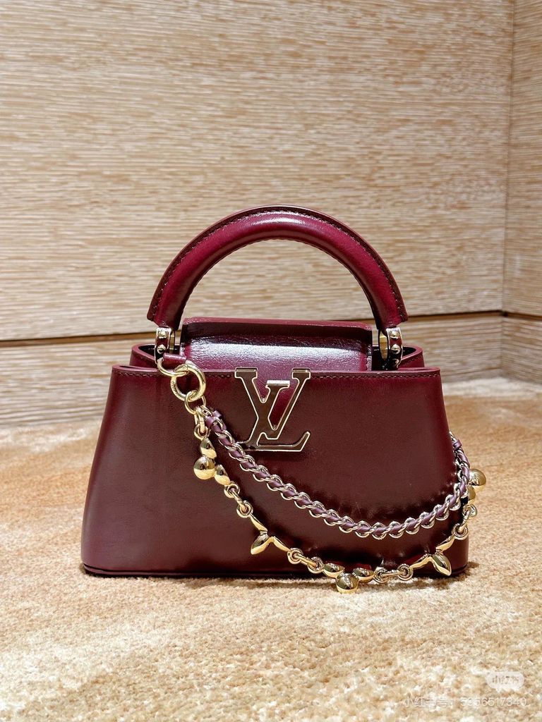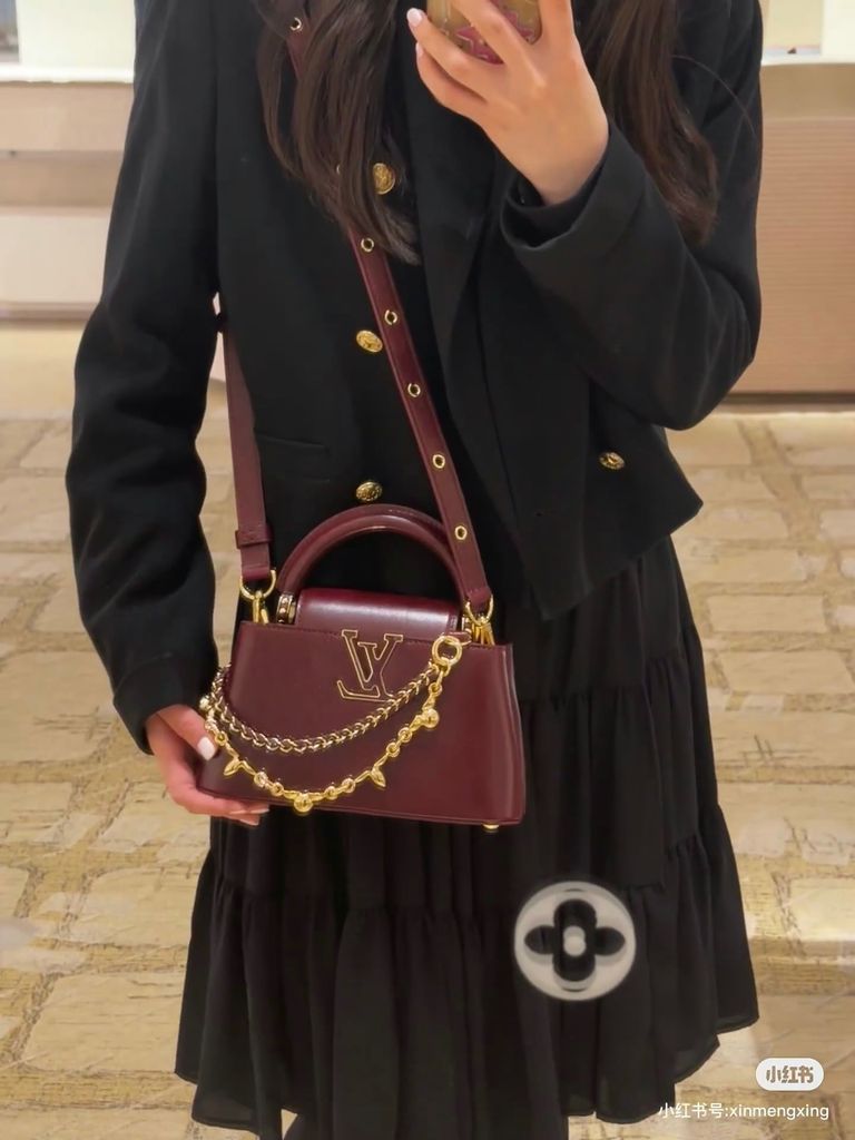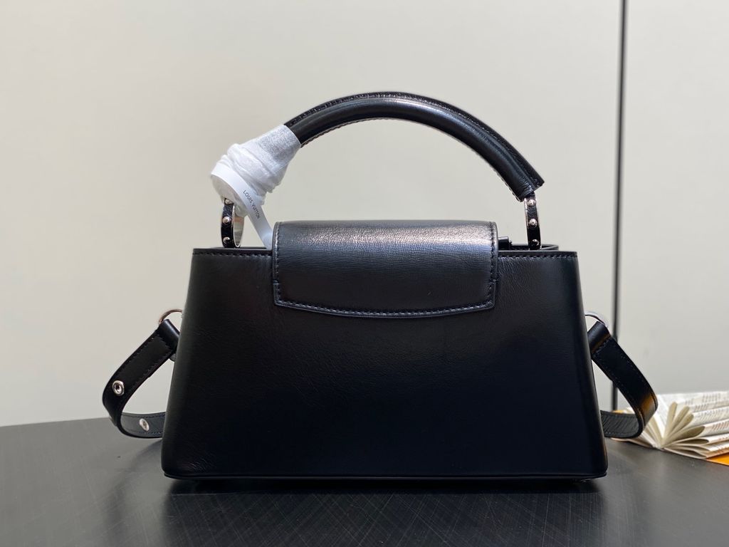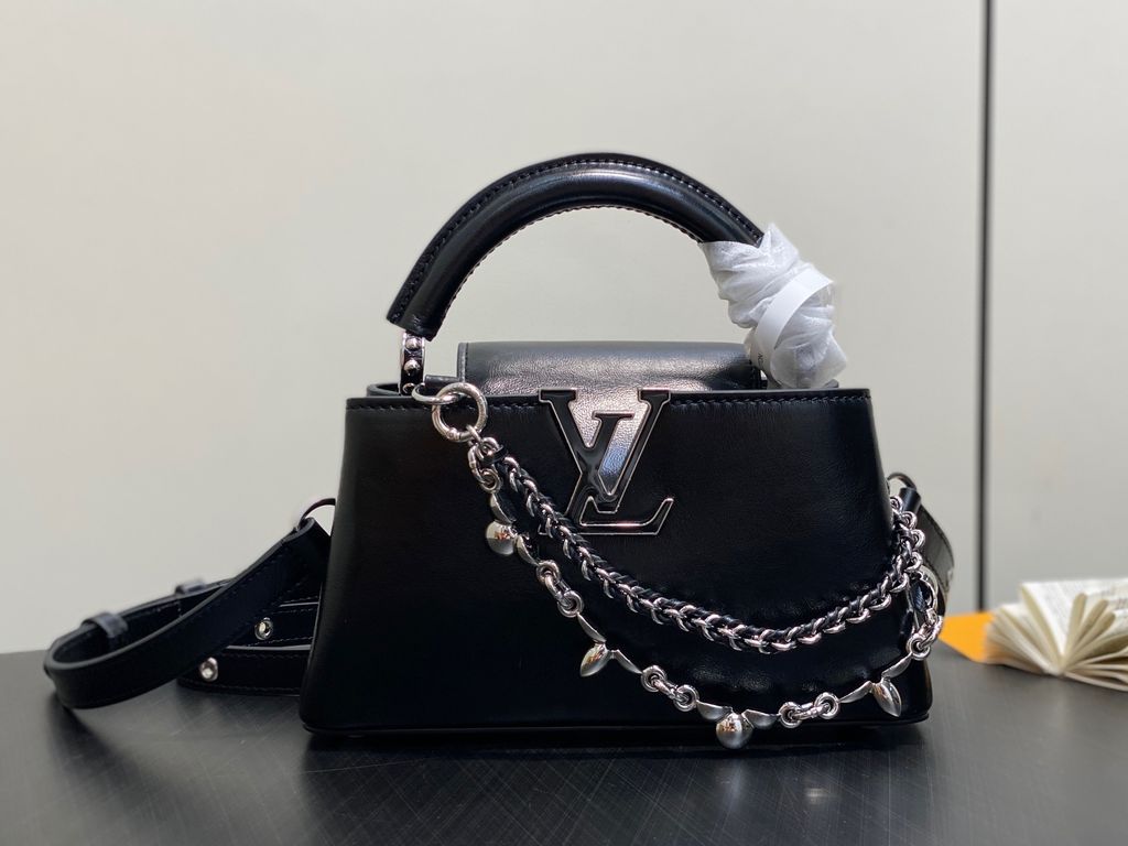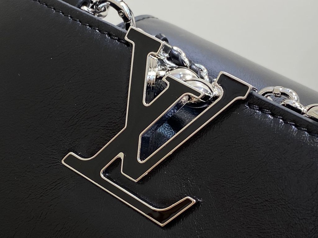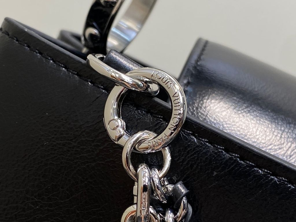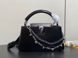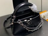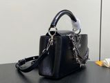 TÚI XÁCH NỮ LV* CAPUCINES EAST-WEST ĐEN OIL WAX – CHUỖI BẠC, PHIÊN BẢN MỚI 22cm 6600k/ 29cm 7200k (HÀNG ORDER QUỐC TẾ)