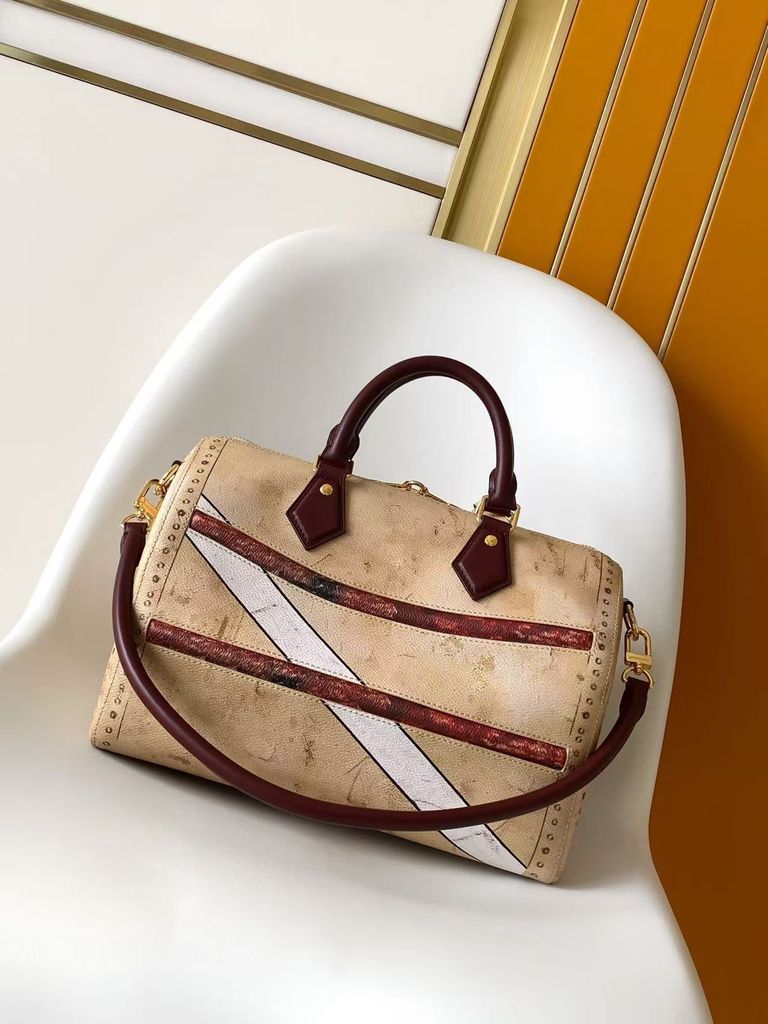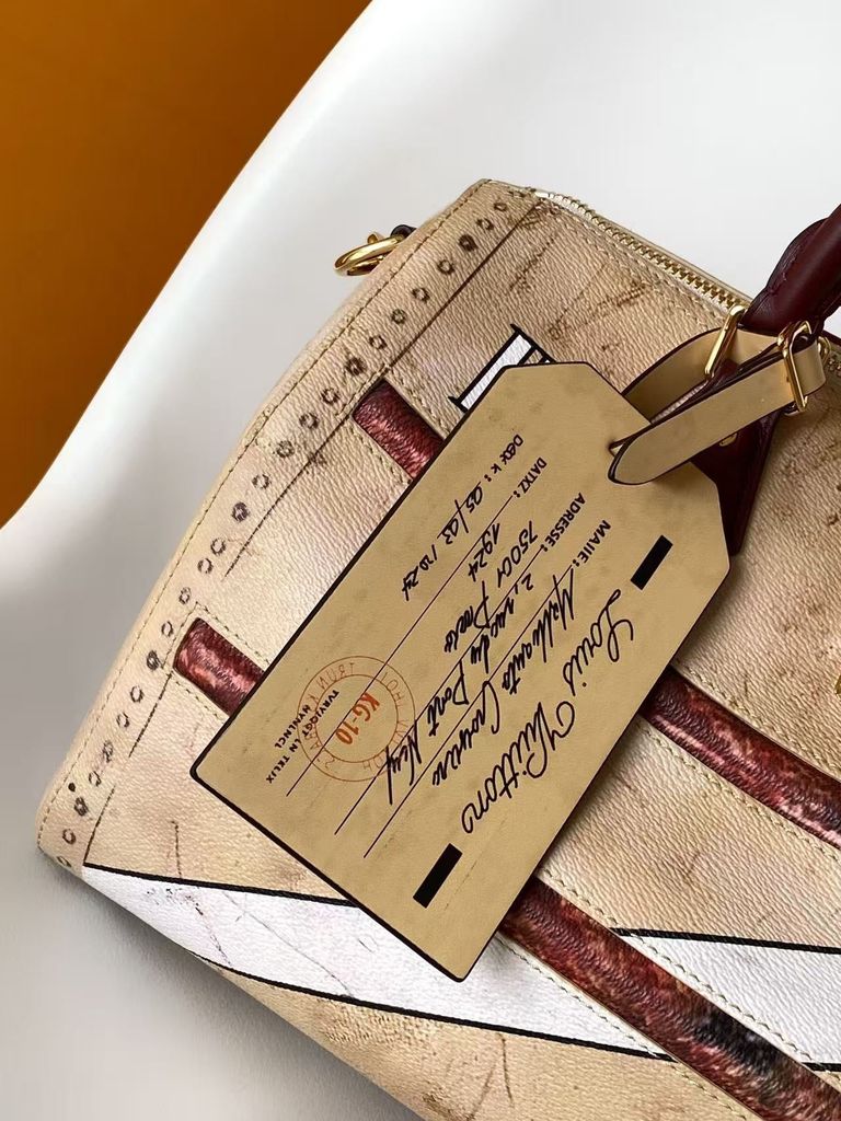 TÚI XÁCH UNISEX L V SPEEDY BANDOULIÈRE 30 “ANNIVERSARY TRUNK” – HOẠ TIẾT VALI DI SẢN, TAG ĐỊA CHỈ THÁO RỜI 4100k (HÀNG ORDER QUỐC TẾ)*
