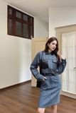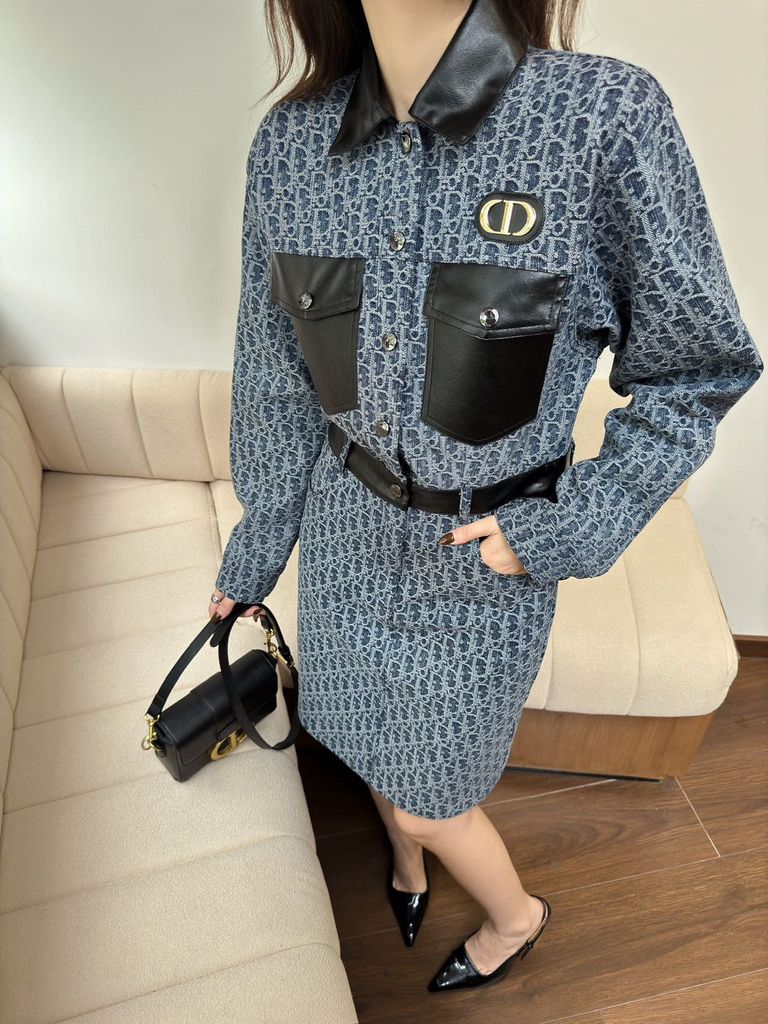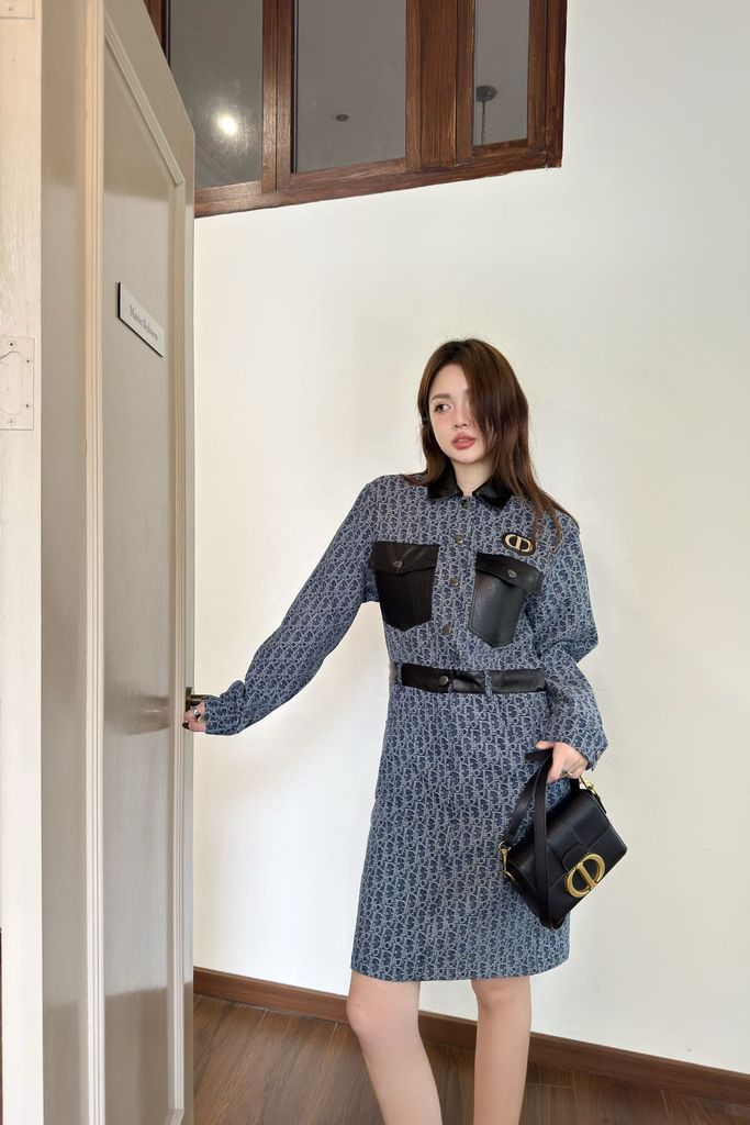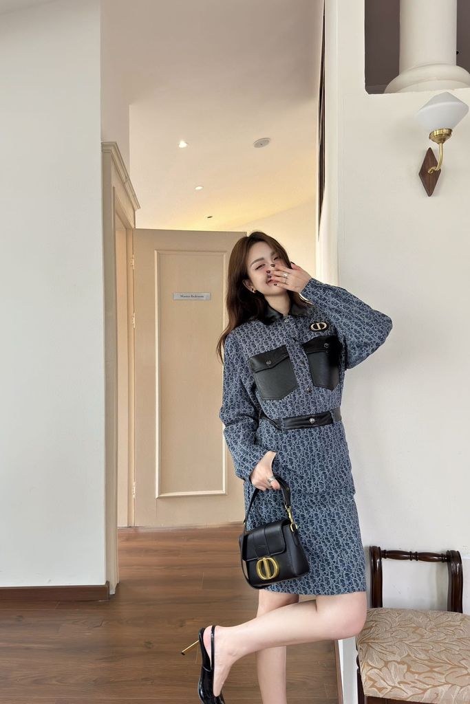 Váy jeans nữ Di*or* hoạ tiết oblique pha da đen đẹp cao cấp