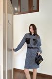 ÁO KHOÁC NỮ DIO* DẠ LEN DOUBLE-BREASTED ĐAI EO – XÁM GHI