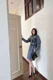• Dáng trench dài qua gối, cổ bẻ cổ điển, 2 hàng nút tạo cấu trúc chỉn chu.