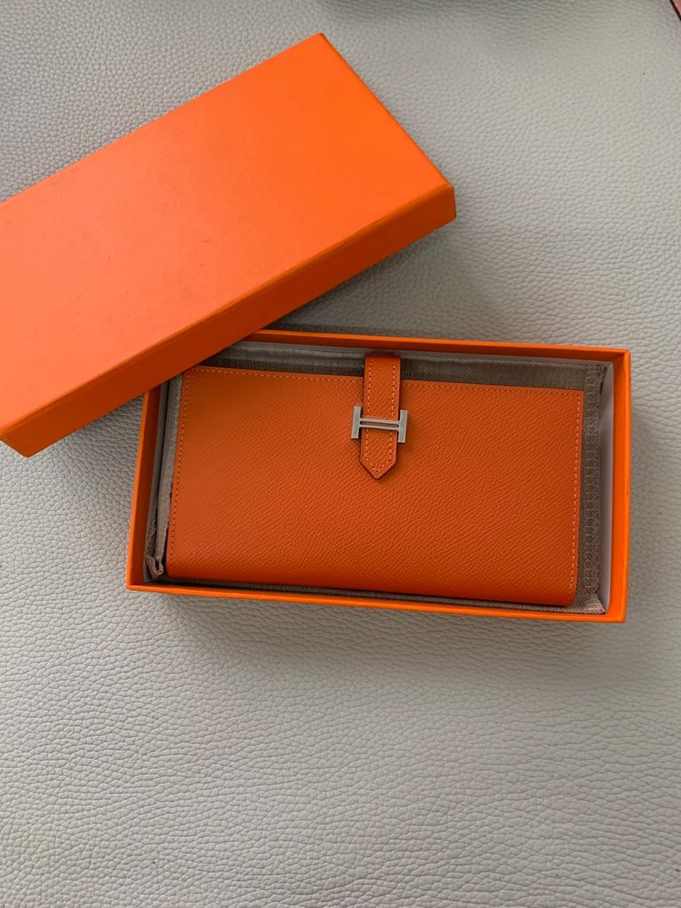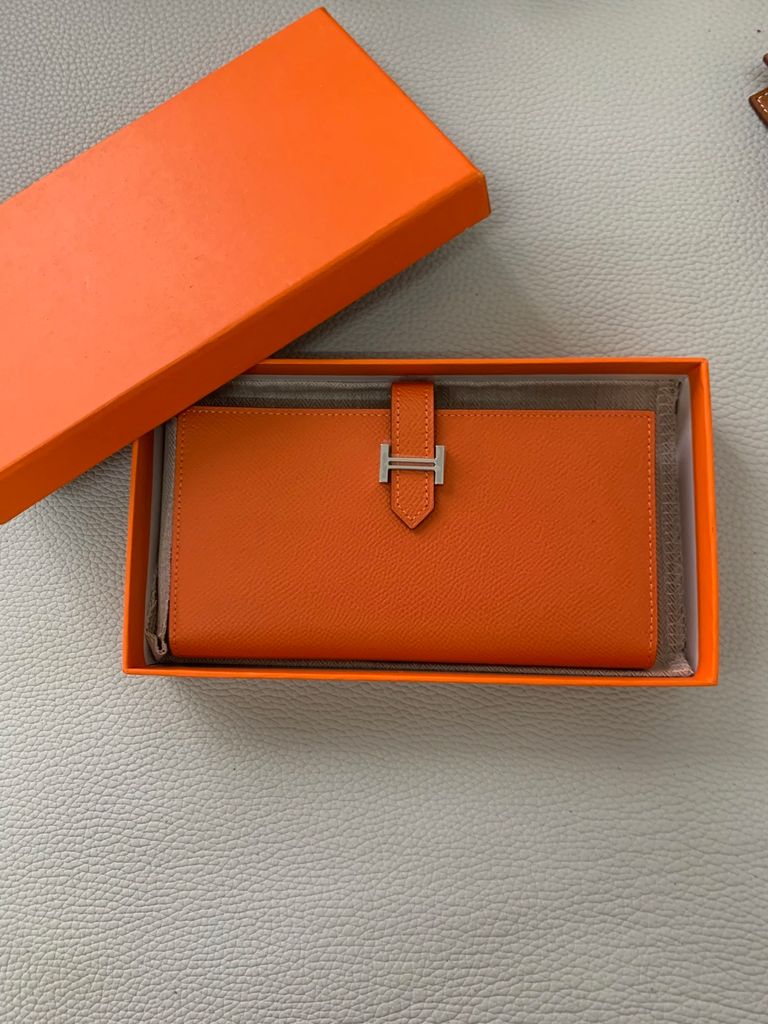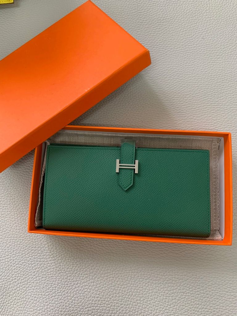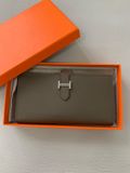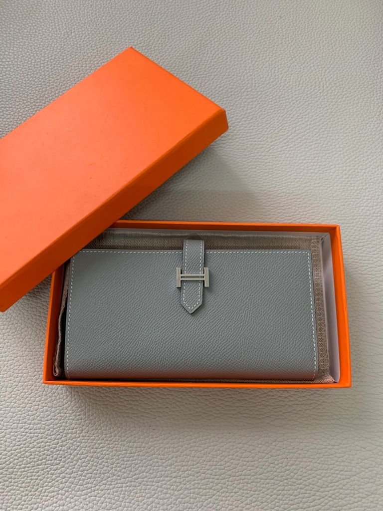 Chiếc ví dài Bearn kinh điển, tone ghi trung tính rất “quiet luxury” – phù hợp khách nữ yêu phong cách tối giản nhưng vẫn muốn toát lên sự tinh tế của H*.