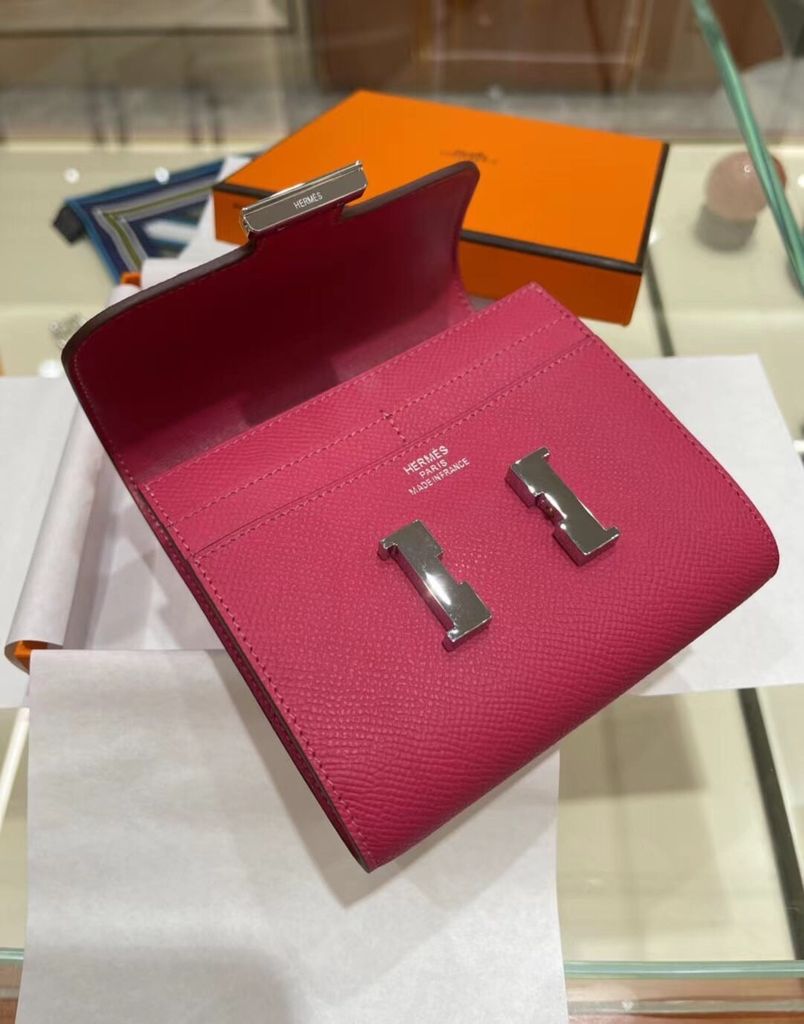 VÍ NỮ H M CONSTANCE MINI DA EPSOM KHÓA H BẢN BẠC – DÁNG COMPACT 13×12CM (HÀNG ORDER QUỐC TẾ)