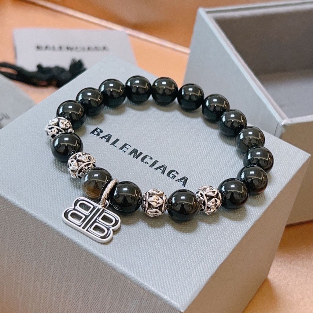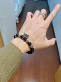 VÒNG TAY NAM NỮ BLCG* ĐÁ OBSIDIAN TỰ NHIÊN – CHI TIẾT BẠC THÁI VINTAGE, CHARM BIỂU TƯỢNG CHỮ KÉP 950k (HÀNG ORDER QUỐC TẾ)