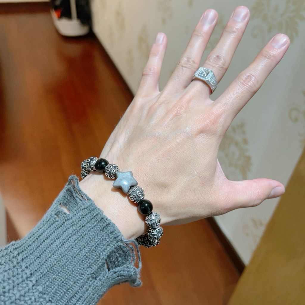 • Mix đá tự nhiên (obsidian/agate/crystal) cho bề mặt bóng mịn, cảm giác mát tay, càng đeo càng “ăn” tay.