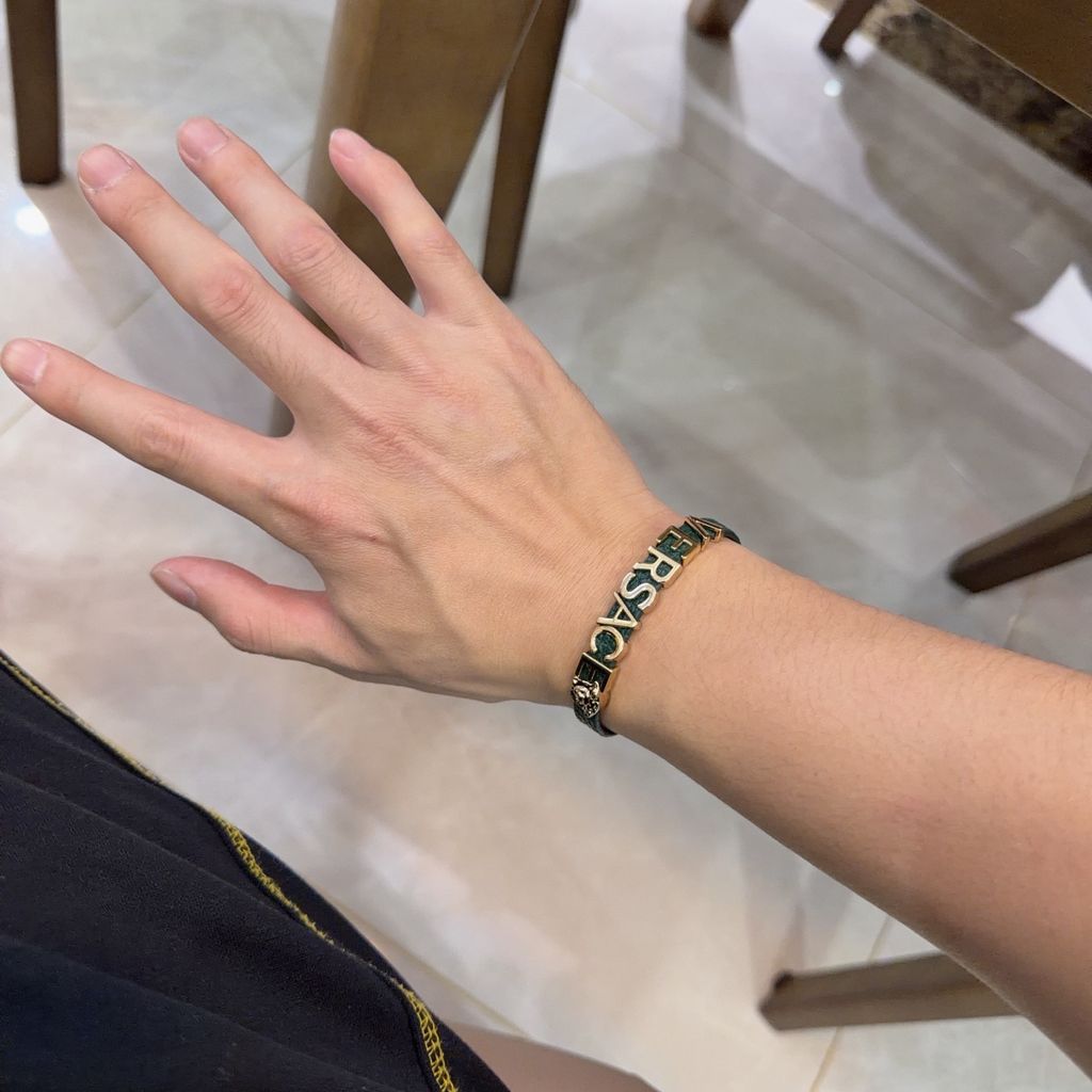 VÒNG TAY NAM NỮ VRS DÂY DA + CHỮ KIM LOẠI NỔI BẬT, ĐIỂM NHẤN MEDUSA ĐÍNH ĐÁ 750k (HÀNG ORDER QUỐC TẾ)
